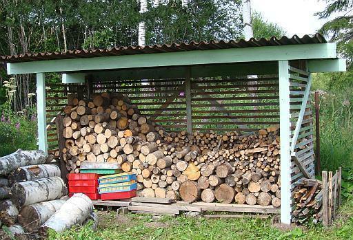 - Първо, горивото трябва да се съхранява някъде, за предпочитане на място, защитено от валежи. Така че трябва да построите навес за дърва или да издигнете навес за дърва.