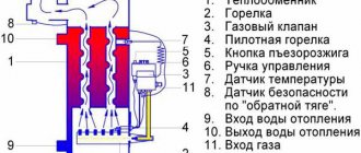 Основният елемент на отоплителната система е газовият котел, който осигурява отопление и циркулация на охлаждащата течност. Нека разгледаме тази единица по-подробно.