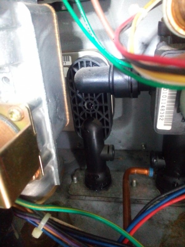 Моят клапан не искаше да изгасне сам, трябваше да махна отопляемия водопровод вляво с него. За щастие той е прикрепен само с един болт към топлообменника.