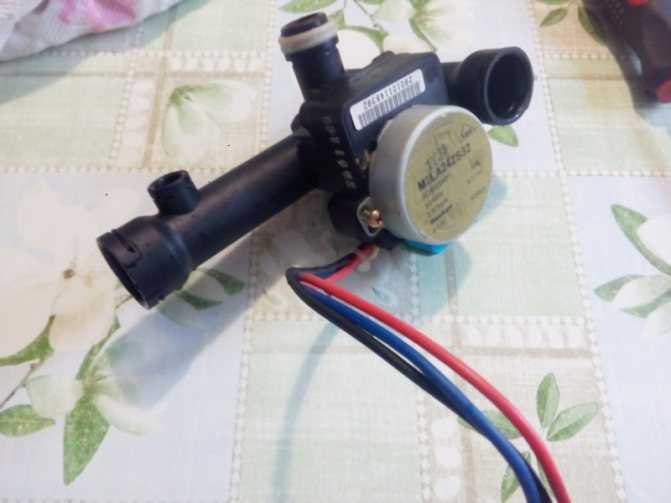 Гумената топка се върти с мотор и превключва потока вода в тръбите - отопление или захранване с топла вода. По същество запушва дупките.