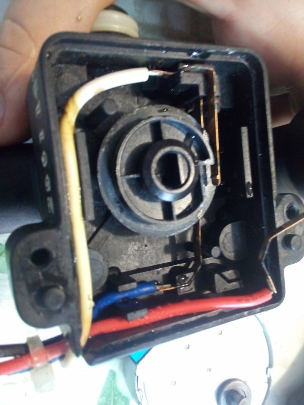 Отстранете пластмасовото колело от тази страна на трипътния клапан. Не му се разрешават контакти. Изваждаме едната, с червена жица, втората (двойна) - не изваждаме напълно:
