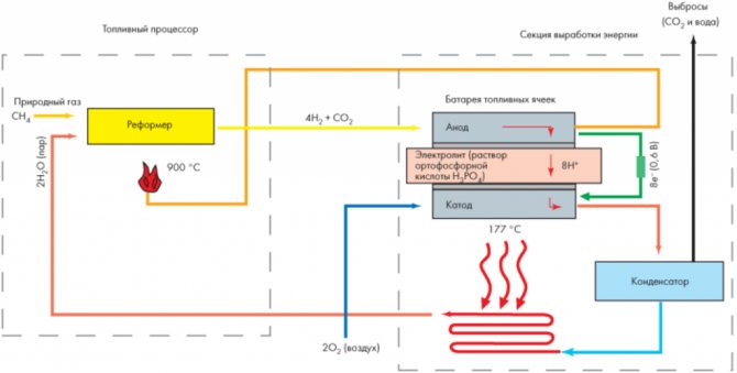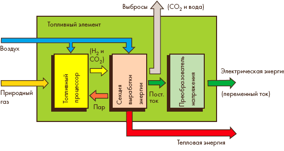 Преработвателят на гориво превръща въглеводородното гориво във водород за електрохимична реакция (риформинг). Основният елемент на устройството е реформатор. Природният газ, постъпващ в риформинга, например, реагира с пара при много високи температури (около 900 ° C) и високо налягане в присъствието на катализатор (никел). Парите, необходими за преобразуване, се генерират от кондензат в резултат на работата на горивната клетка. В този случай се използва топлина, която също се отделя в резултат на нейната работа.