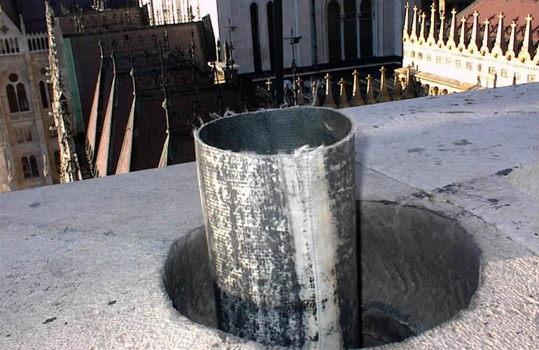 Когато втулката придобие вътрешната форма на канала, вместо сгъстен въздух се подава пара. Полимерът първо омеква и след това се втвърдява. Кондензаторът се инсталира отдолу. На изхода от мината се отрязва допълнително парче втулка, а отгоре се монтира глава.