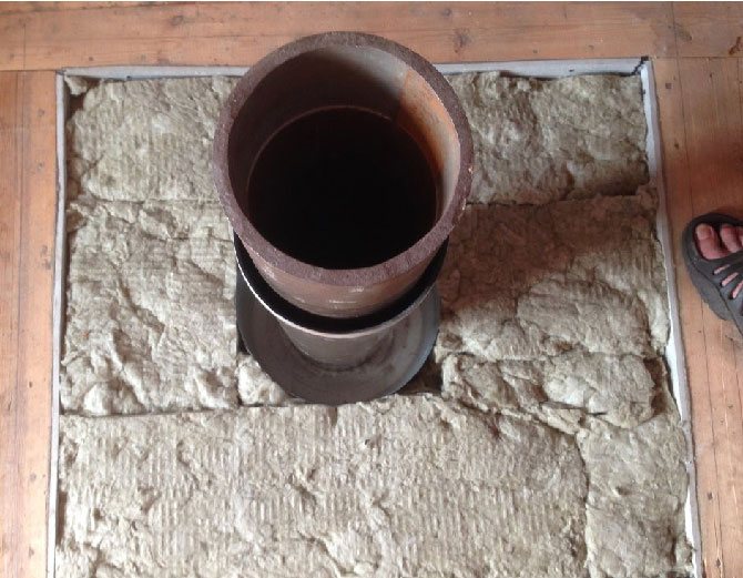 - Използването на насипна топлоизолация (между втулката и тухлената шахта).
