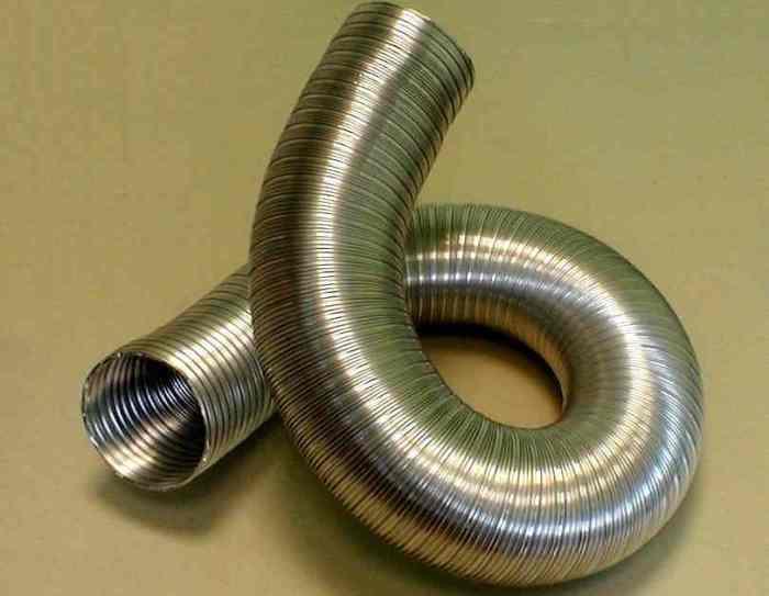 Гъвкавият комин е кръгъл, кух профил. За производството на такава тръба ламарина, навита в спирала, е свързана с помощта на заключващ шев.