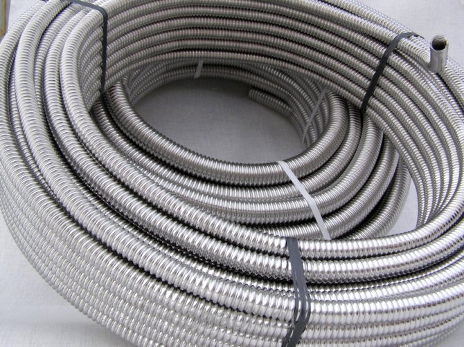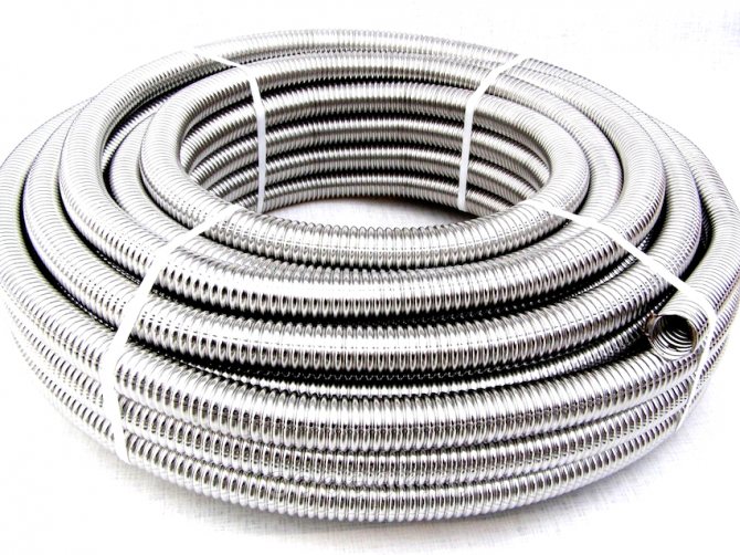 - гъвкавост, благодарение на която не се изискват усилия от човек, използването на специални инструменти и създаването на много връзки за огъване на тръбата, докато гофрирането от неръждаема стомана е много издръжливо;