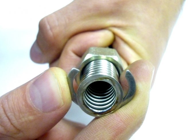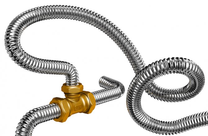 Цената на тръба от вода от неръждаема стомана с духало е по-висока от цената на продуктите за газово оборудване, което е оправдано от тяхната надеждност. Сам по себе си духалото е под формата на гофрирана тръба със закрепващи нипели в краищата. Свържете линията на духалото с помощта на шайби и гайки. Връзката може да издържи на налягане от 6 атм.
