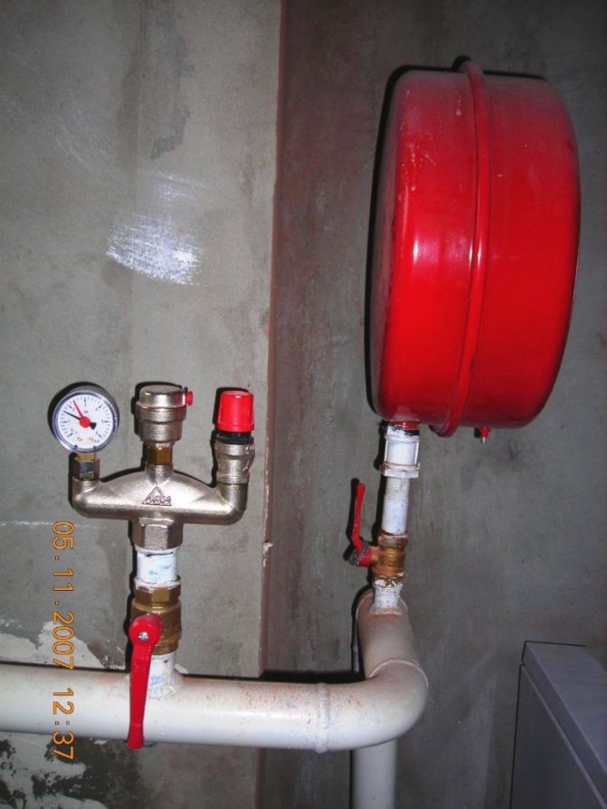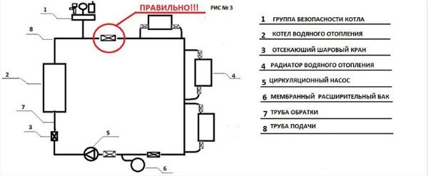 Схема на свързване на група за безопасност в отоплителна система с разширителен резервоар