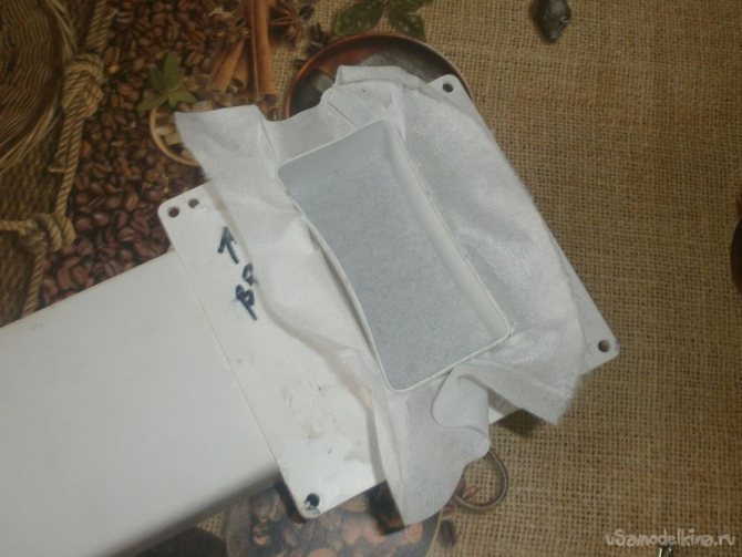 Идеята се роди от само себе си: върху парче кутия се поставя мрежа (взех парче нетъкан текстил, същият, който се продава в шивашки магазин, въпреки че парче дамски чорапогащник е идеално за тази роля ),