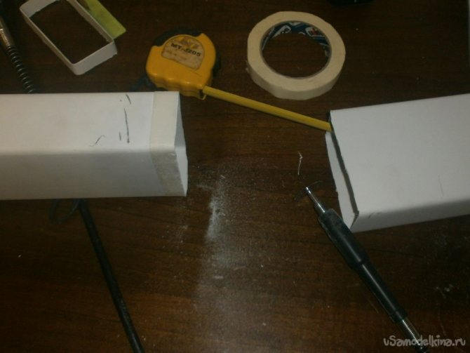 От инструментите, които използвах: • бормашина с победоносна бормашина; • отвертка с кръстосана глава за затягане - можете да направите с отвертка; • всеки ножовка, способна да реже пластмаса; и маскираща лента маркират права линия; • рулетка, ниво, молив и маркер за маркиране; • използвайте отвертка, за да затегнете винтовете и да забиете дюбелите с чук; • "течни нокти" залепват пластира и единия ъгъл: по принцип можете да използвате всяко друго лепило.