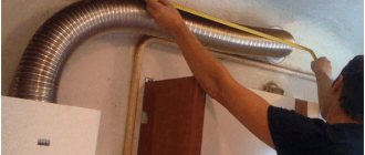 Монтираме вентилационната шахта. Когато дължината на фрагмент е около половин метър, достатъчно е едно отворче,