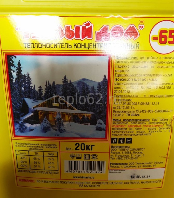 - "Топла къща -65" - състав с висока концентрация, произведен от етилен гликол.