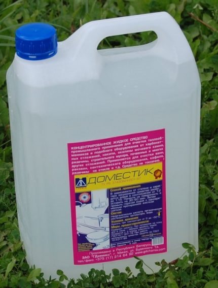 Повечето химикали съдържат разтвори на различни киселини. Концентрацията и съставът им са подбрани по такъв начин, че ефективно да разтварят солевите отлагания, но да действат възможно най-внимателно върху вътрешната повърхност на тръбопровода. Изборът на подходящ реагент трябва да се основава на материала на топлообменника.