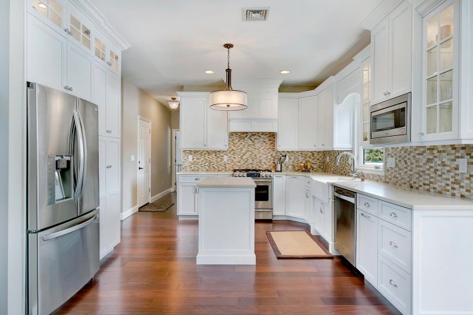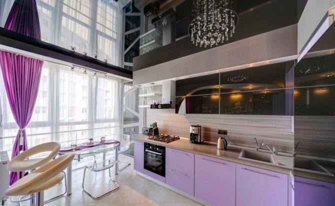 При избора на опънати тавани за кухнята, освен разходите, се вземат предвид и дизайнерските особености на стаята. За декорация на малки кухни се използват платна с лъскава повърхност, които създават ефект на визуално увеличаване на пространството и го правят по-лек. В просторни стаи можете да инсталирате матирани или сатенени тавани, а тези от плат изглеждат органично в комбинация с луксозен интериор. Цветовата схема на опънатите тъкани и декоративното покритие трябва да съответстват на дизайнерската концепция на стаята.