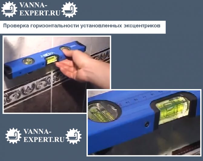 - Завъртайки ексцентриците с ключ, постигнете идеално централно разстояние между входовете от 15 cm... След това проверете хоризонталната инсталация с ниво на балон.