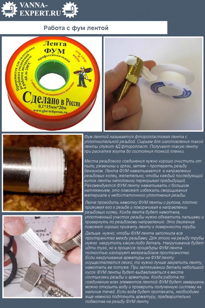 На резбата се навива уплътняваща лента FUM, след което конструкцията се сглобява в обратен ред.
