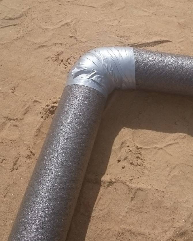 За да се защитят ставите на въздуховодите, изолацията се нарязва на фрагменти с подходяща форма и размер. Не забравяйте да почистите тръбата от мръсотия преди изолация.