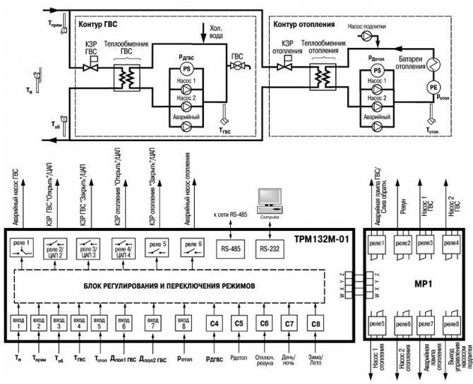 Остава само да свържете всички елементи и да свържете контролера към електрическата мрежа. Подробна схема на свързване винаги е посочена в ръководството за автоматизация, например, така изглежда схемата на свързване към контролния блок Komfort ECO: