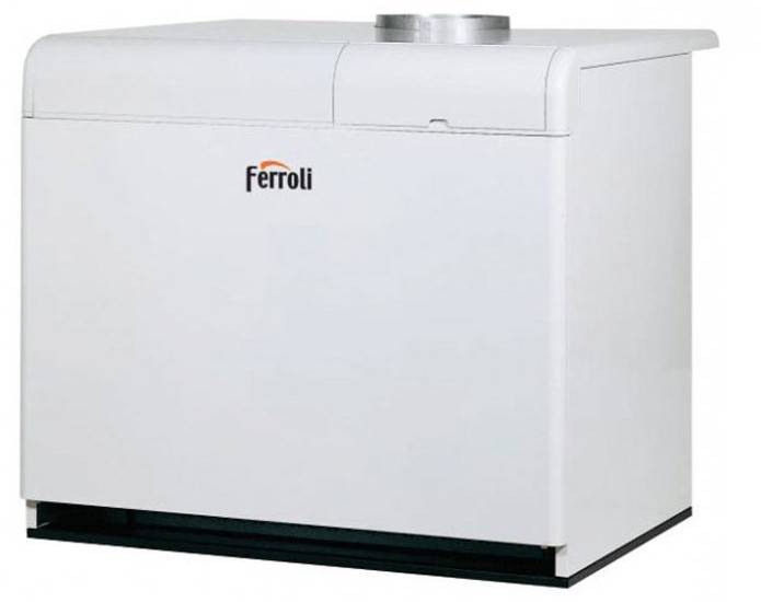 Едноконтурен атмосферен газов котел, практически безпроблемен на фона на стенните модели на Ferroli. Той разполага с чугунен топлообменник, който е устойчив на корозия и следователно е издръжлив. Освен това има добри показатели за ефективност - 90,9-91,7% и просто отличен разход на газ за атмосферна подова стойка, максималният разход на природен газ за версията от 23 kW е 2,68 м3 / ч.