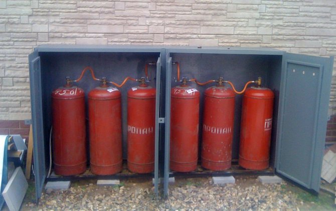 Група цилиндри на рампата заедно с колекторите се поставя в здрава стоманена кутия, която се извършва на разстояние 1-2 м от къщата или се монтира към стената на сградата (с огнеустойчивост по-висока от III степен). Краткосрочните запаси (1-3 бутилки) могат да се съхраняват директно у дома, но не и в подземни нива.
