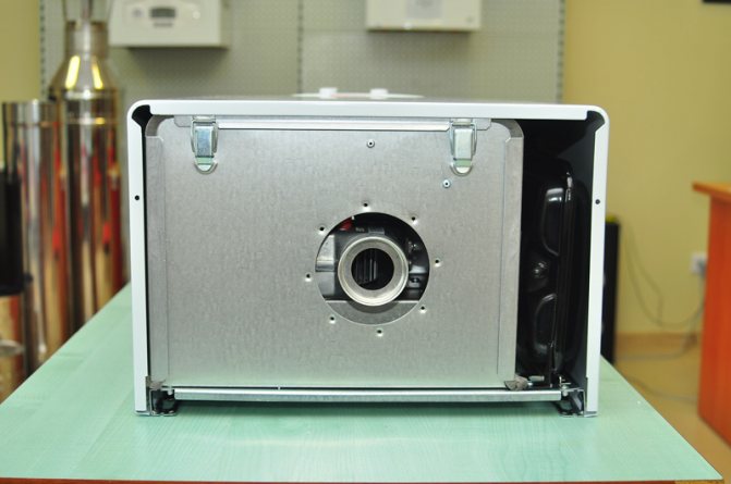 - Конвекция. Топлопредаването се извършва само в топлообменник, нагрят от пламъка на газова горелка.
