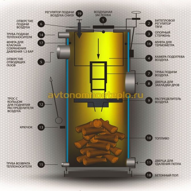 Структурата и принципът на действие на котел за изгаряне на дърва Stropuva