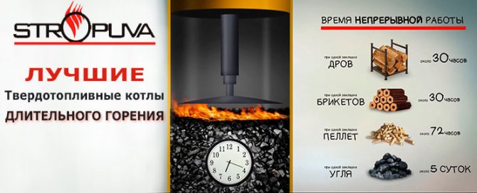 Въз основа на вида на котела на Stropuv, дърва за огрев, пелети и въглища могат да служат като негово гориво. За работа върху въглища и пелети се използват универсални котли с U закрепване, оборудвани с амортисьор и решетка.