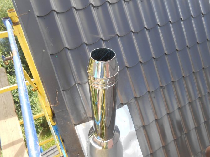 на върха на отвора е монтиран външен фланец, в който се преминава тръбата на комина. - От външната страна