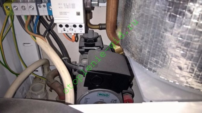 - Циркулационна помпа (термопомпа). Това е незаменим компонент на системата, поддържа стабилна скорост на движение на охлаждащата течност във веригата.Произвежда принудителна циркулация на течността и създава необходимото налягане в системата, като същевременно осигурява най-ефективния топлообмен и затопляне на помещението.