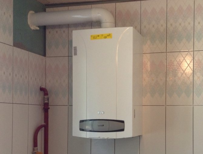 - След това се инсталира коминът на газовия котел и се потвърждава наличието на тяга. Между другото, повечето съвременни окачени агрегати са тези, които нямат комин. Продуктите от горенето се отстраняват с помощта на малък вентилатор, тъй като в комина не се изисква силна тяга.