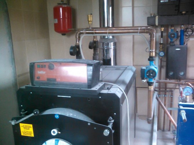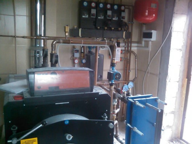 Общото тегло на оборудването съгласно тази схема има голяма стойност, която трябва да се вземе предвид при изчисляване на натоварването на пода на котелното помещение.