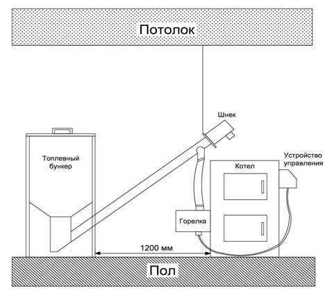 Несъответствието на размерите на помещенията с изискванията за пожарна безопасност води до невъзможност за обслужване на шнека с пелети и бункера.