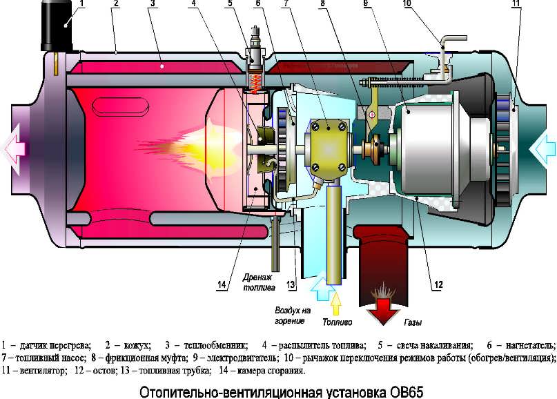 - бензинът изгаря, горивото се загрява, издига се с пари, започва подаването на топлина.