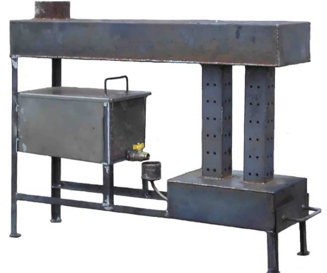 Една от схемите за отопление е използването на налягане за подобряване на производителността. Тук се използва специален вентилатор, който издухва въздуха вътре. Тогава парите се обогатяват с кислород, в горната камера се получава по-интензивно изгаряне. За производството се използва всеки съд от затворен тип, както и тръба с отвори, направени отстрани. Вентилаторът е инсталиран в горната част на устройството.