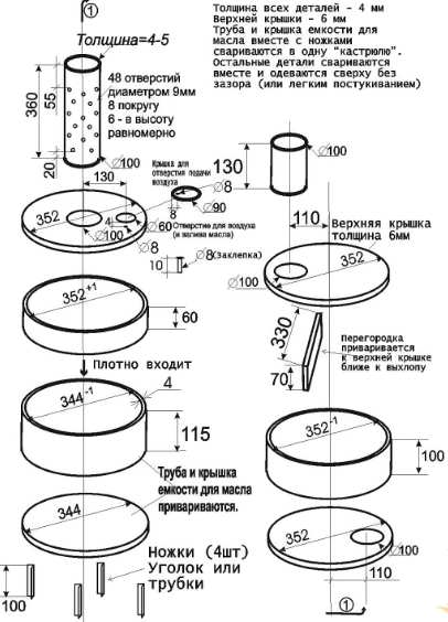Стабилната и безопасна работа ще бъде осигурена от капковото подаване на отработено масло. Те са направени от стари цилиндри, както и метални листове. Продуктът е направен според вида на затвореното горене, тъй като в отворената версия горивото може да се запали, което ще доведе до опасна ситуация.