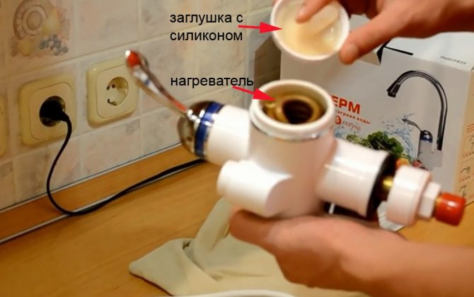 В нагревателния кран нагревателният елемент е разположен в корпуса на смесителя. Обикновено следното може да се разграничи в дизайна:
