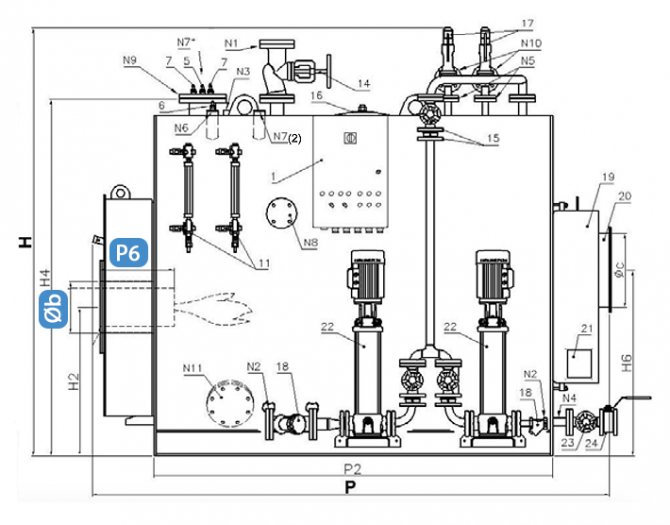 Схематична схема на кондензен котел. При проектирането и инсталирането на канализационната система трябва да се осигури отводняване на кондензат.