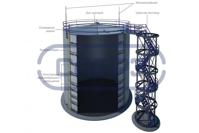 Конструктивно, като вертикален или хоризонтален резервоар, резервоарът BAGV е оборудван с технологично оборудване за безопасна експлоатация: