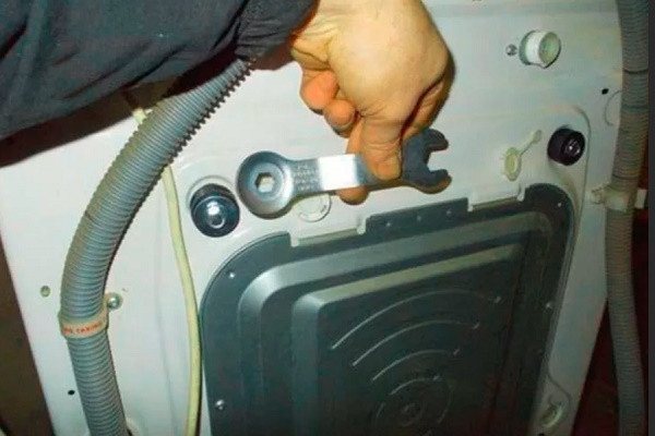 - Скобите трябва да се свалят от задната стена на устройството., които са определени за твърдостта, необходима за транспортиране на домакински уреди. Такива елементи също така поддържат гъвкави части на конструкцията, а именно маркуча и електрическия кабел.