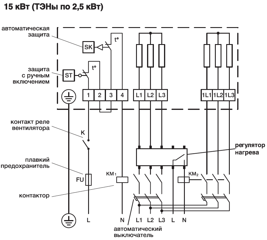 - петфазно управление от електрически нагревател;
