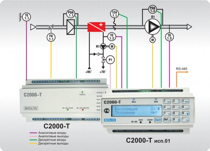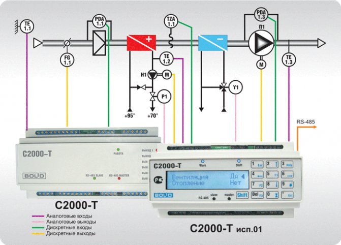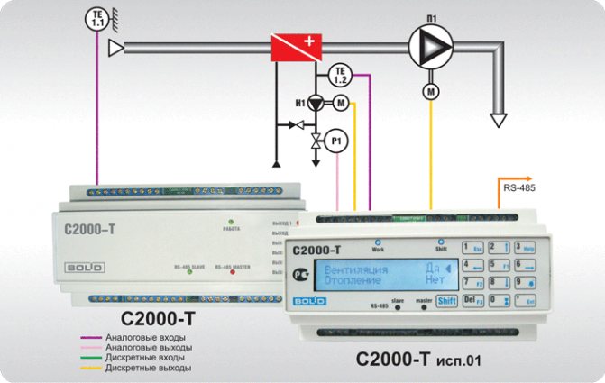 - поддържане на температурата на въздуха в обслужваните помещения в границите, определени от програмата на контролера;