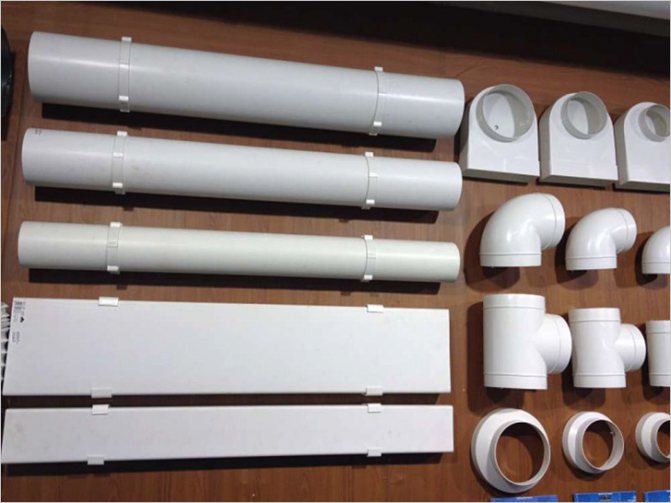 Що се отнася до материала на тръбите, често се използва метал, но инсталирането им може да бъде твърде трудоемко и неизбежната кондензация в крайна сметка ще доведе до ръжда. PVC тръбите са чудесни за самостоятелна инсталация. Те са достатъчно леки, за да можете сами да направите инсталацията, те са по-добре запечатани, не ръждясват. Освен това за пластмасовите тръби има много допълнителни части, които опростяват монтажа - различни адаптери, ъгли и др. За източване на натрупващия се кондензат е монтиран специален кран.