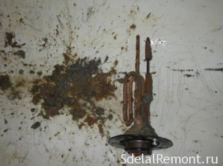 Под името на този елемент всеки разбира, че в процеса на работа той е потопен във вода. Това означава, че има проблеми с варовика, който трябва да се отстрани. Това е основната причина за ранния му провал. В допълнение, образуването на бяла кора на повърхността му води до намаляване на топлопроводимостта нагревателен елемент. Освен това, ако не премахнете котлен камък, тогава цената на електричеството за отопление на водата се увеличава.