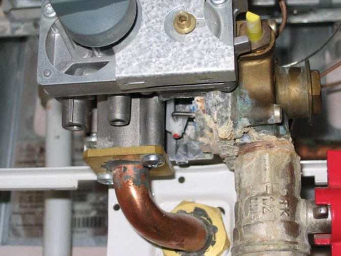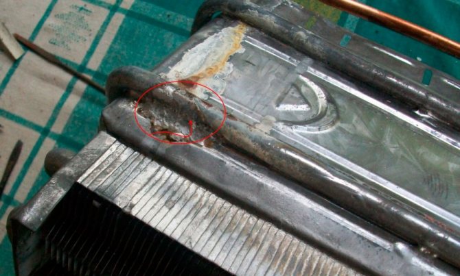По-сериозен проблем е изтичането на радиатора. Новият топлообменник струва почти колкото новия модел Oasis Turbo. Как да спестите пари? Затворете фистулите чрез запояване. Прочетете повече в статията "Как да запоявате газов бойлер".