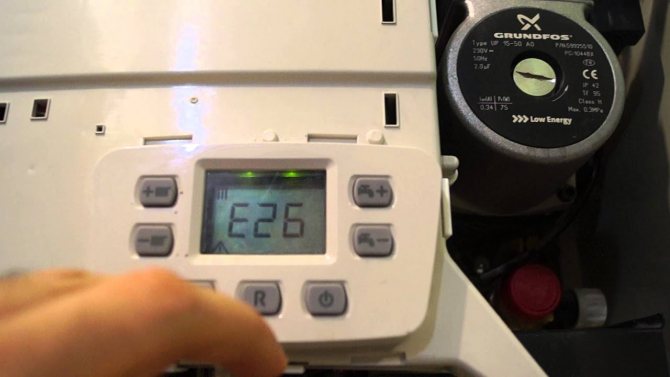 Тази ситуация е възможна в няколко случая: когато налягането в отоплителната система е неправилно настроено, както и когато диодният мост или вентилът, отговорен за подаването на газ, е повреден. Грешката e01 се появява и на таблото.