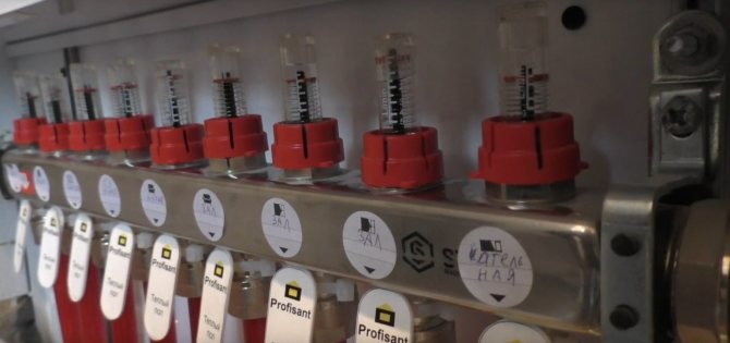 - Когато всички контури са пълни, клапаните трябва да се обърнат, за да се отворят. След това подаването на вода към всеки контур може да се регулира чрез ръчно определяне на температурата.