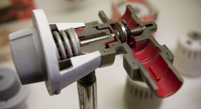 Терморегулаторът се основава на така наречения духал - елемент, чувствителен към температурни промени, който с помощта на пружина въздейства върху общата електрическа верига. По този начин, когато температурата се промени, маншонът предава сигнал към пружината, пружината към лоста, лоста към основния механизъм и механизмът действа върху цялостната електронна система. Разбира се, регулаторът съдържа и специално уплътнение, което действа като изолатор на вътрешните компоненти на термостата от външната среда (предимно от влажността). Регулаторът също се пълни със специална течност (хлорометил) вътре.
