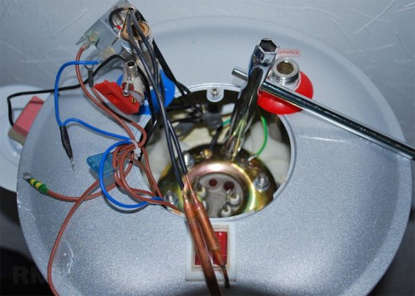 - Освен това плащането за работата на бойлера и термичната защита се премахва. Гайките на скобата, отговорни за заземяването, се развиват. Те трябва да бъдат внимателно защитени от влага. След отстраняване на елементите се образува дупка. Трябва да се млъкне.