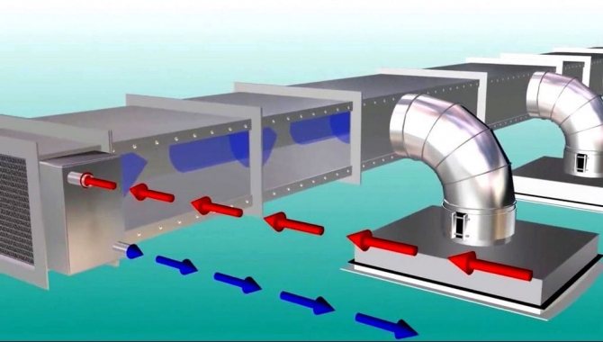 Подаването на въздух до помещението и отстраняването му се извършва чрез системата за въздуховоди. Каналната мрежа съдържа директно тръби, адаптери, сплитери, завои и адаптери, както и дифузори и разпределителни решетки. Диаметърът на въздуховодите, съпротивлението на цялата мрежа, шумът от работата на вентилацията и мощността на инсталацията са тясно взаимосвързани. Ето защо за оптимална вентилация в процеса на проектиране е необходимо да се балансират всички показатели. Това е трудна работа, която само професионалистите могат да свършат правилно.