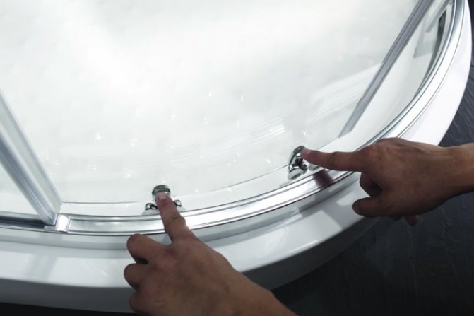 Рамката за стъклени врати е изравнена с ниво, така че пролуката между вратите (когато се съберат) да заеме строго вертикално положение. В този случай всички вертикално разположени профили също трябва да бъдат строго вертикални. След това можем да предположим, че кабината е окончателно изложена - тя може да бъде фиксирана.